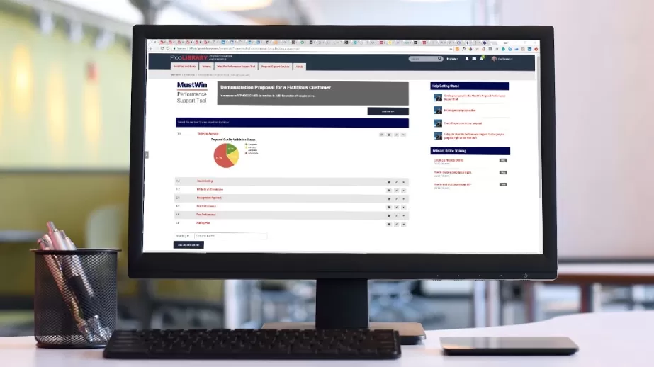 The MustWin Performance Support Tool assists you with proposal writing by putting instructions next to where almost all of you do your writing, in Microsoft Word. You can display it on a second monitor or in another window. As you write, it will be there to remind you of everything you are supposed to address and how. It brings all the iterations of Proposal Content Planning online.