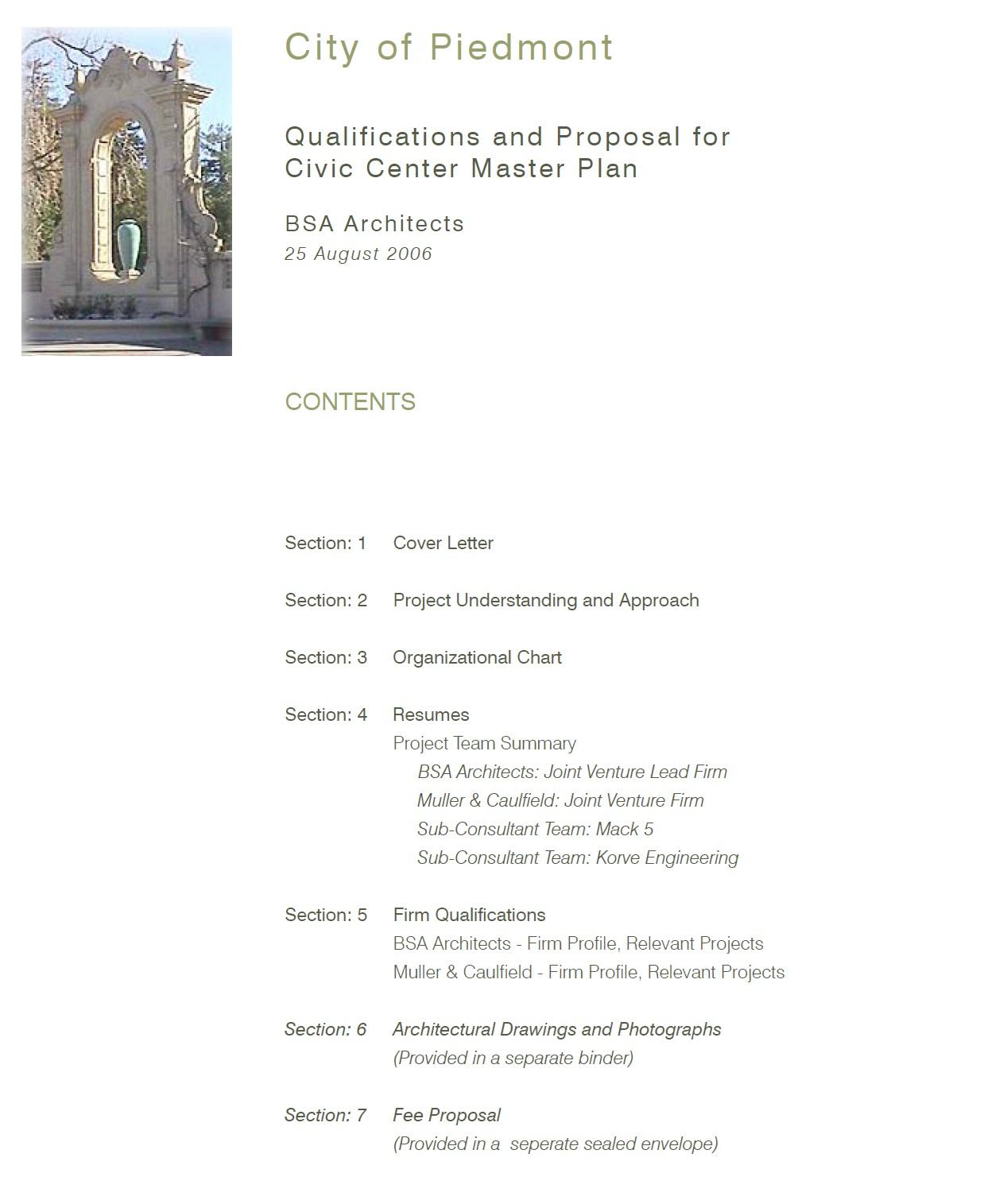 Sample Proposals for the City of Piedmont Qualifications and Proposal for Civic Center Master Plan
