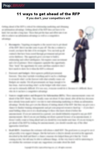 This is a two-page summary of 11 different ways you can discover opportunities ahead of RFP release. It include a one-page summary that's a good reminder to have in front of you.Free -
